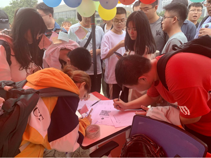社团管理中心理事部主办的“喜迎国庆·我为祖国送祝福”活动于9.28日在经纬广场顺利开展。