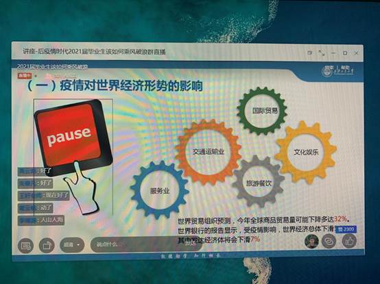 此次讲座付老师从就业形势分析、后疫情时代的就业新常态、当前黄色短剧