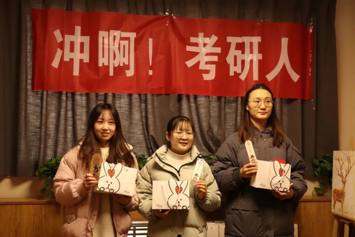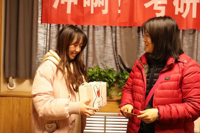 的200余名考研学子每个人都收到了一份学院精心准备的考研爱心包和学弟学妹们的祝福卡。