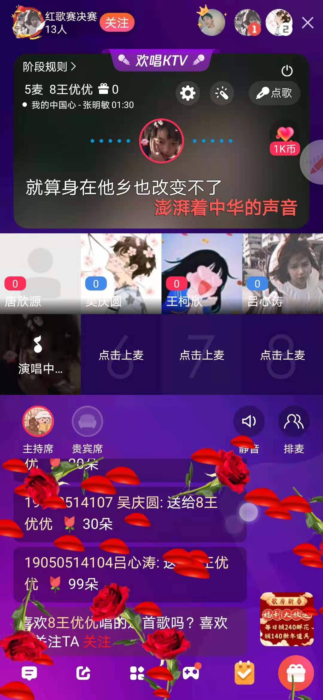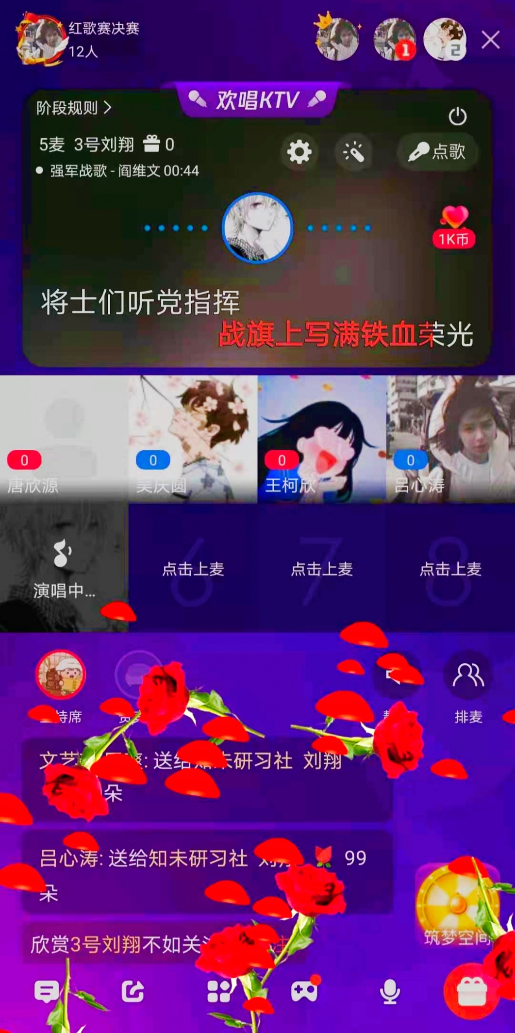 学生会主办的以“学四史勇担青春使命,筑未来唱响时代盛歌”为主题的红歌比赛在线上全民K歌歌房顺利举行。