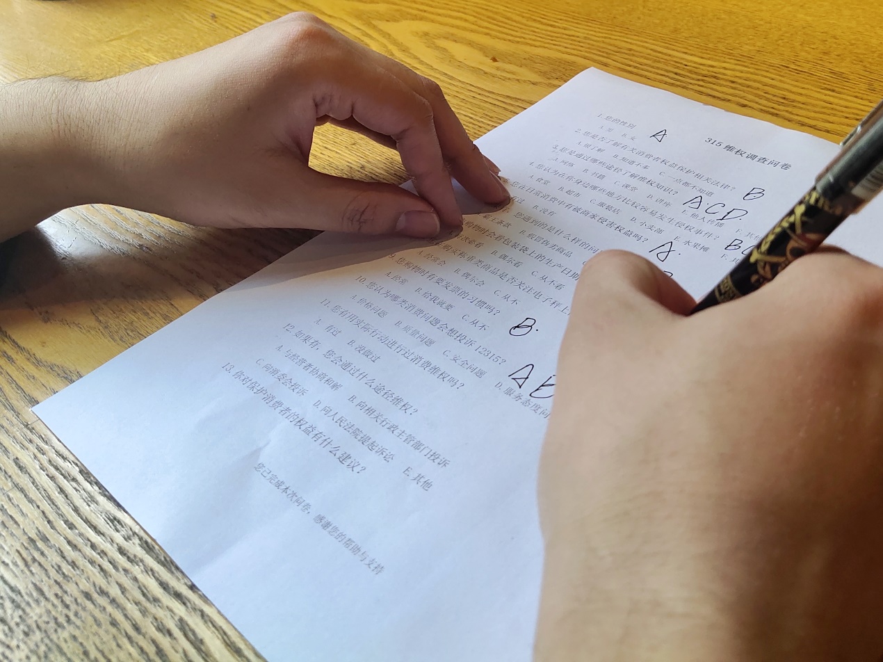 在博苑广场进行了有关消费者维权知识宣传活动,活动过程中,工作人员向同学们发放调查问卷。随后,工作人员对部分同学就“生活中的侵权行为”、“遭遇侵权时的维权方式”以及“对于校园宣传消费者权益知识”三个问题进行采访,调查过程中发现学生消费者在生活中时常遭受侵权事件,但是对于维权途径的了解并不充分,工作人员对同学们进行了相关知识的宣传与普及,并呼吁大家多多了解消费者权益保护相关知识,当在生活中遭受消费侵权行为时,学会运用法律武器捍卫自身的合法权益。