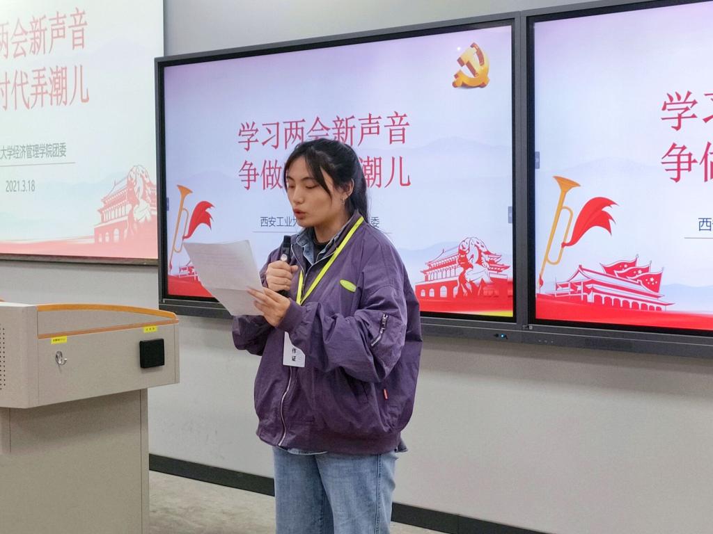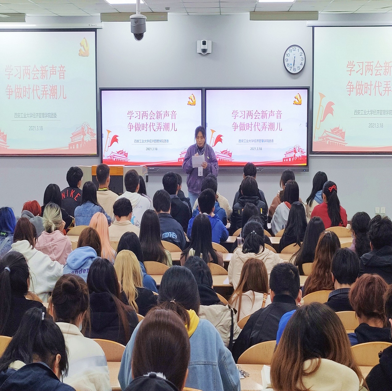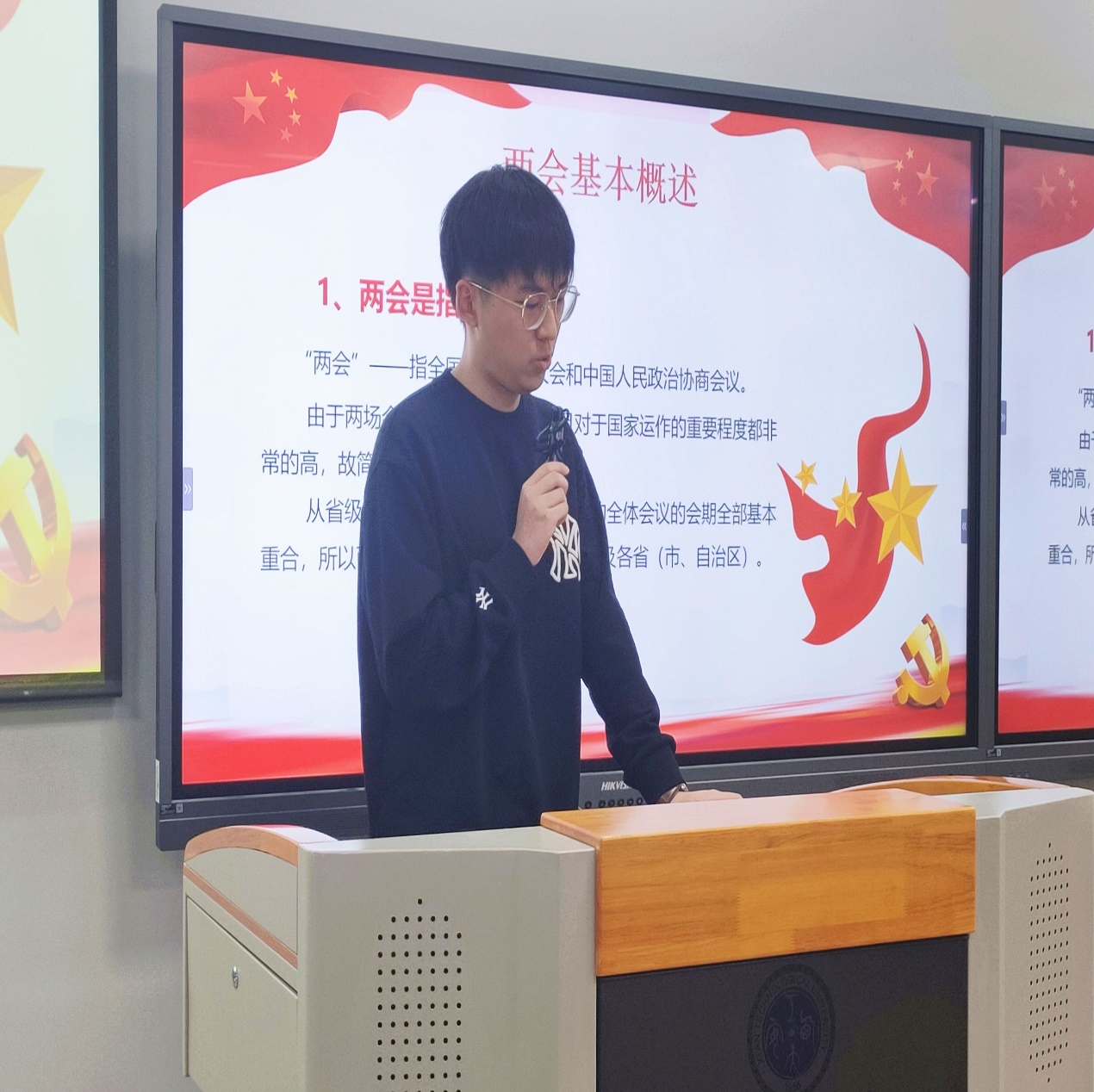 团委在教2-201开展以“学习两会新声音,争做时代弄潮儿”为主题的活动,让两会精神进校园,推动校园精神文明建设。本次活动由康怡主持。