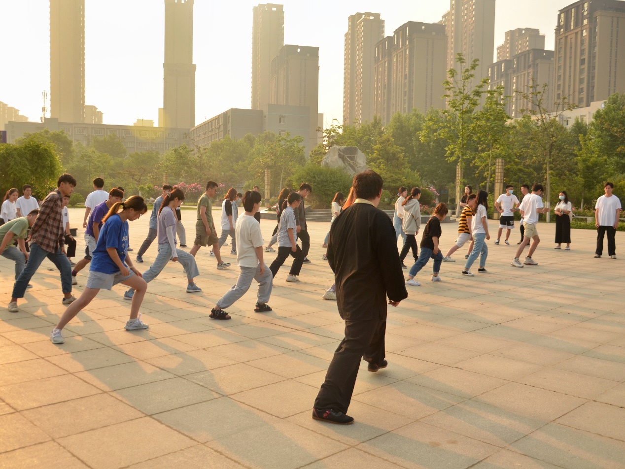 早晨七点,参加活动的同学在博苑广场集合并进行签到,随后,在工作人员的引导下排队站好,准备开始太极锻炼。活动伊始,武术协会张家铭向同学们介绍了学习内容和动作要领。首先是三种基础步法:马步、弓步、虚步,同学们认真听讲并进行练习,武术协会成员进入队列为同学们一一进行纠正。