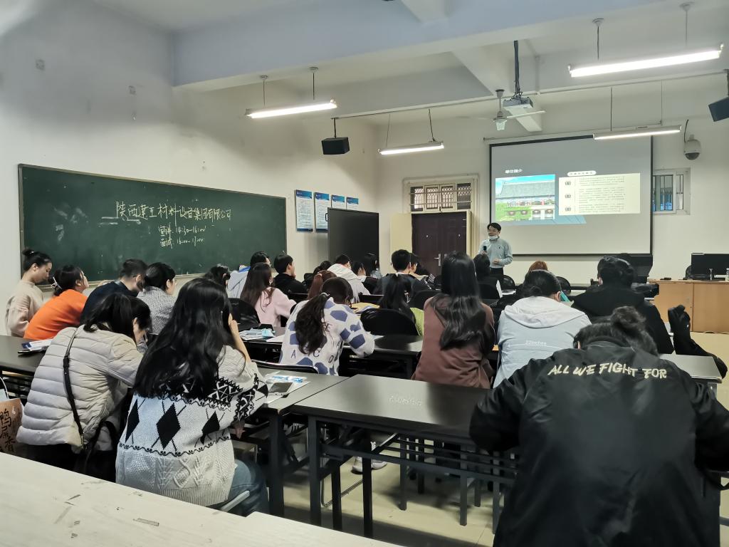 携手陕西建工材料设备物流集团举办的经管专场招聘会在5-502顺利召开,学院近百名毕业生到场参加。