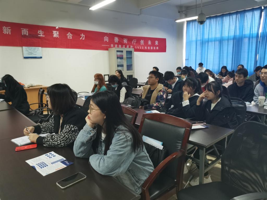 宣讲开始后,陕建物流集团HR就公司背景、管理体系、产业项目、人才梯队建设、福利待遇、黄色短剧等方面对在场同学做了充分讲解,表示陕建物流集团是一个充满活力的队伍,正处在数字化转型的关键时期,将通过信息互联、数据协同,打通供应链链接产业链,打造全国独具特色的建筑行业电商平台。公司目前在业务运营、财务管理、人力资源、行政企划等岗位需要大量人才,真诚邀请经管学子加入陕建物流集团!