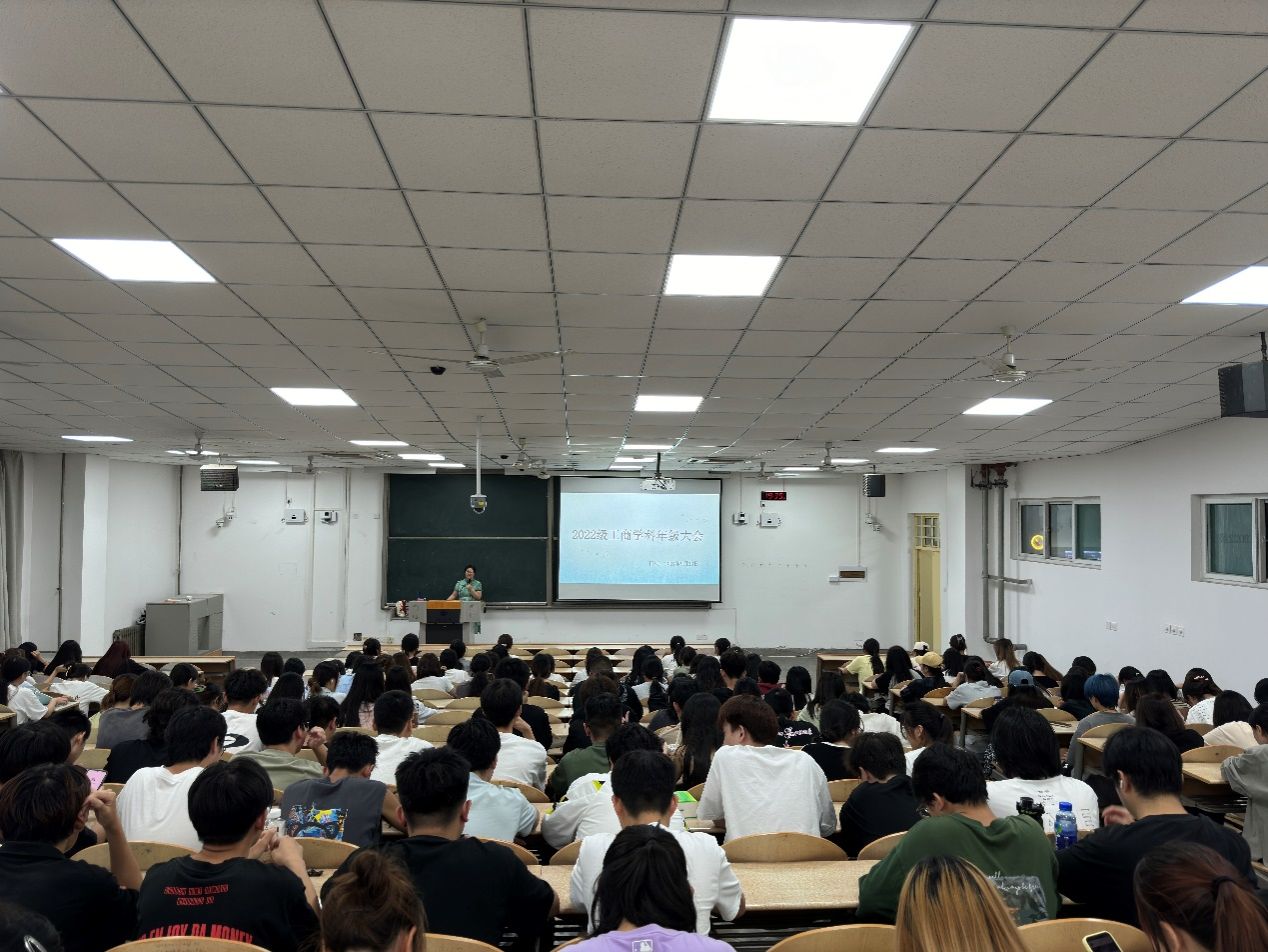 2022级工商学科在教1-103由辅导员张玉玲老师组织召开了年级大会,会议内容主要包括了学校审核评估的具体要求、大三学年的学业规划及中秋国庆的安全教育。