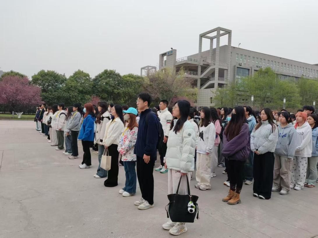同学们有序列队,等待仪式进行。七时整,国旗护卫队迈着整齐划一的步伐护送国旗走向旗杆。在激昂雄壮的国歌声中,五星红旗缓缓升起,全体师生庄严肃立,面向国旗行注目礼。这一刻,师生们的目光追随着国旗,眼神中满是对祖国的热爱。