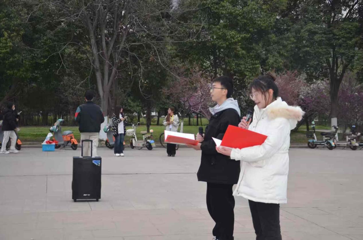 国旗下,两位学生代表深情朗诵了爱校诗篇。他们的声音在广场上空回荡,传递着对母校的深情厚谊和对未来的美好憧憬。此次活动不仅丰富了校园文化生活,也展现了学院的文化魅力和对传统与现代融合的追求。