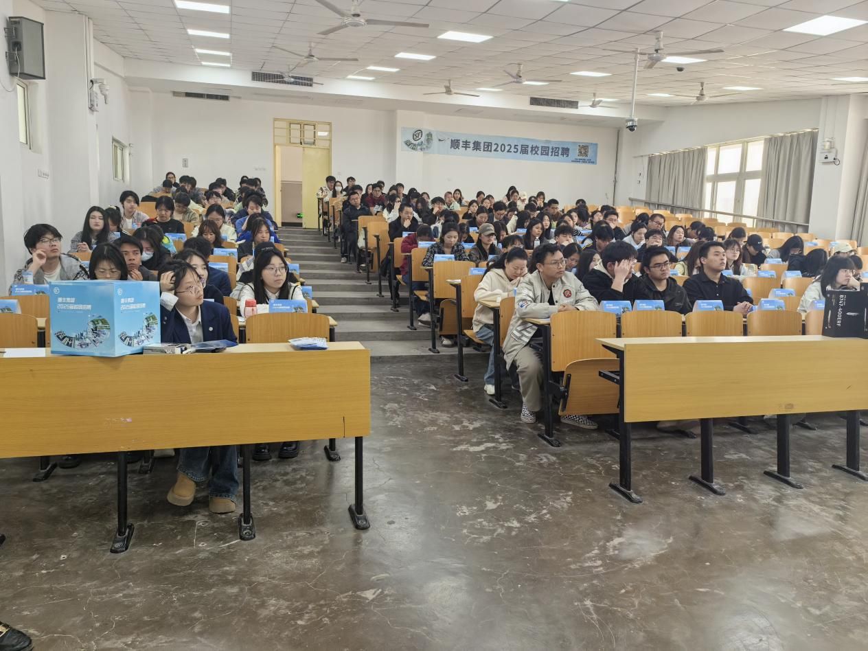在教1-201教室举办了顺丰集团2025届专场招聘会,本次招聘会参会人员200余名,包括100多名2025届毕业生、80多名2026届物流管理专业学生、部分研究生。