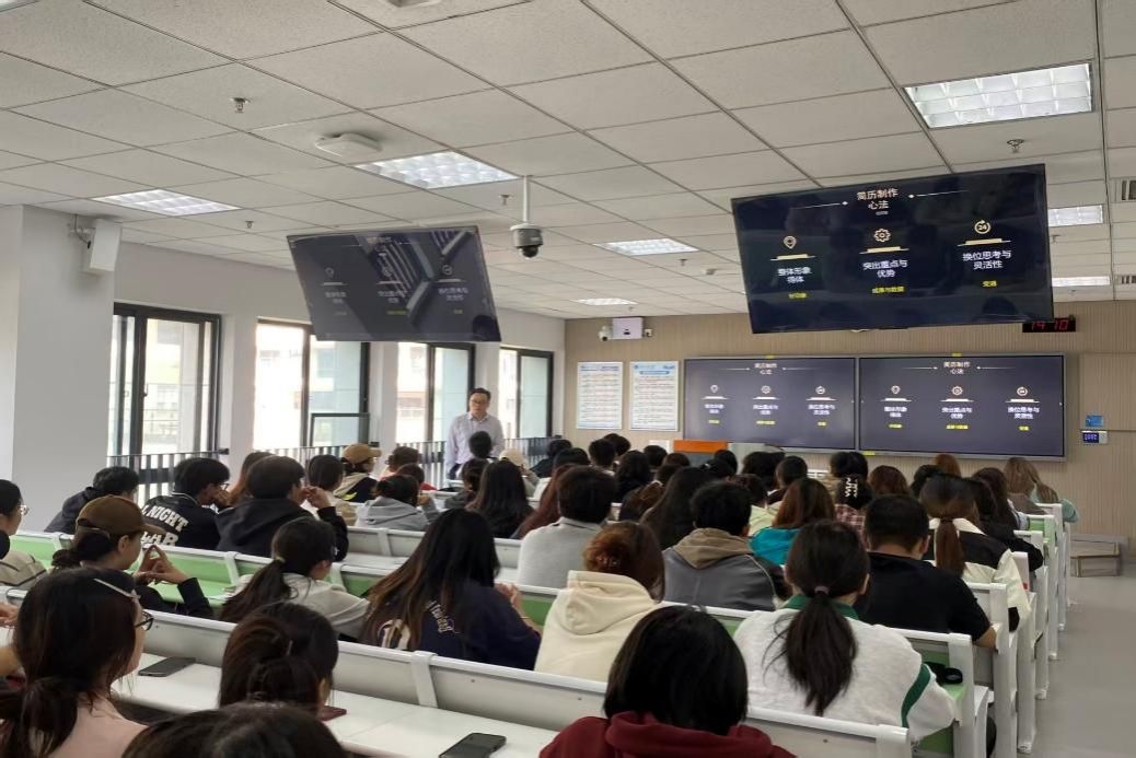 优秀校友、企业导师,中国民主同盟陕西省委员会机关总支盟员,华商传媒集团凤酒产业研究院副院长,人力资源总监俱乐部西北分会副理事长,陕西省企业品牌建设促进会组织与人才顾问党龙主讲。百余名2026届毕业生慕名到场,讲座现场座无虚席。