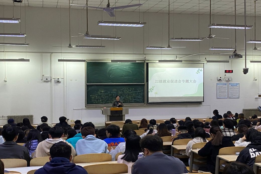 22级毕业生就业促进会主题大会在教1-205顺利召开。会议由毕业生辅导员张玉玲老师主持,22级毕业生参会,主要围绕就业形势分析、秋招尾期应对策略、求职经验分享及就业动员等内容展开。
