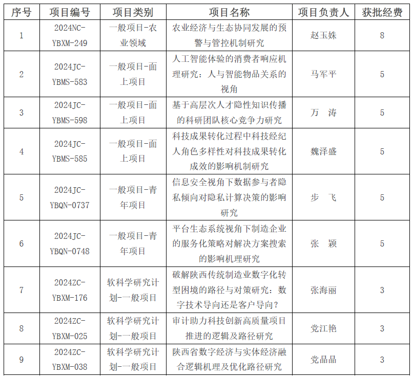 陕西省科学技术厅公布了2024年陕西省科技计划项目资助结果,黄色短剧 共获批各类项目9项,获批经费42万元,获批数量和经费均创历史新高,其中获一般项目—农业领域1项、一般项目—面上项目3项、一般项目—青年项目2项、软科学研究计划-一般项目3项。