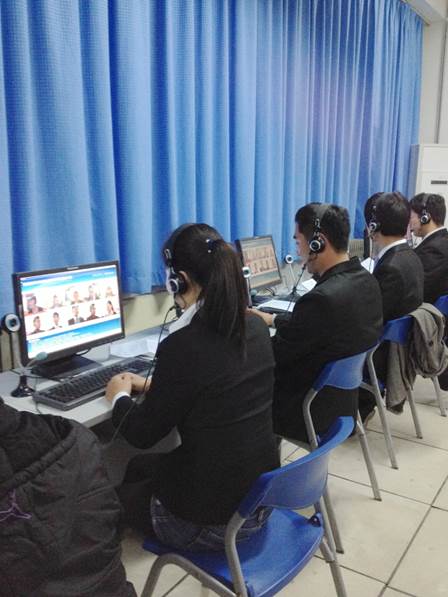 商务谈判模拟实验室使用面积为90平方米,能够同时容纳40人进行实验。实验室主要承担国际经济与贸易和市场营销专业的商务谈判、商务礼仪等课程的实践教学和情景案例教学,并为师生的科研与交流提供服务。商务谈判模拟演练是学生以不同的角色参与商务谈判,通过这一演练,使学生了解现代商务谈判的流程,学习先进的商务策划理念,提高现代商务策划能力;同时通过仪容、姿态、表情、语言、礼仪实训,使学生充分了解自我、展示自我,培养学生的自信与交际能力。